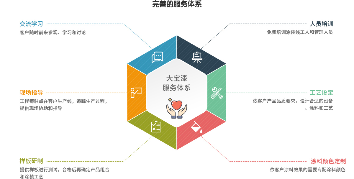 同時(shí),大寶漆還專門指派熟悉產(chǎn)品施工及產(chǎn)品應(yīng)用的工程服務(wù)人員,長(zhǎng)期進(jìn)駐服務(wù)網(wǎng)點(diǎn),為客戶提供點(diǎn)對(duì)點(diǎn)式專業(yè)服務(wù),包括調(diào)色打板、樣品制作、駐廠指導(dǎo)、問題解決、人員培訓(xùn)、售后服務(wù)等,并可在24小時(shí)內(nèi)趕赴現(xiàn)場(chǎng)給予客戶專業(yè)的技術(shù)指導(dǎo)服務(wù)。