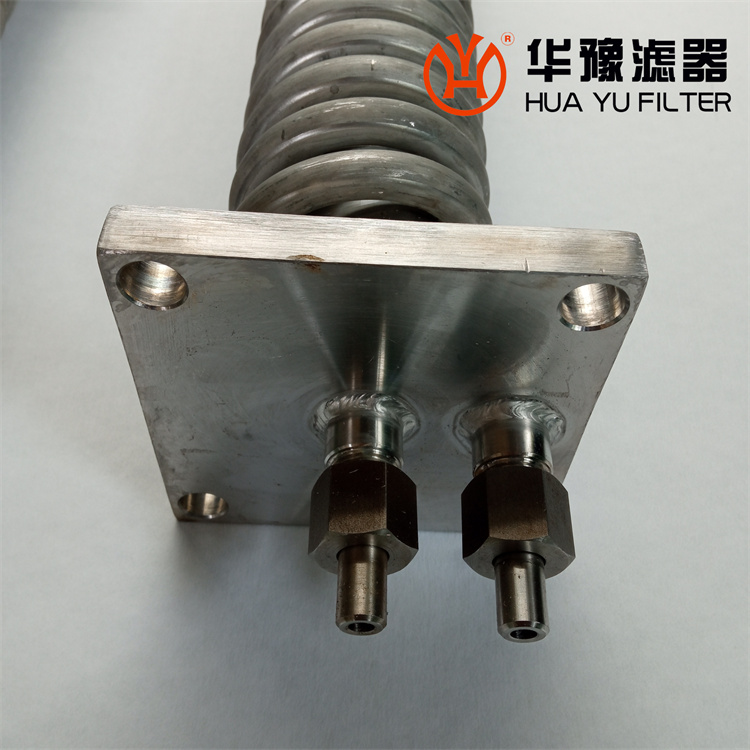此冷卻器對工藝要求級高,我公司是由一根管子直接盤成雙盤管,無任何焊縫,間隙均勻,線條流暢!主要技術參數:設計壓力30MPa,設計溫度350℃,冷卻面積0.2~0.41m2。