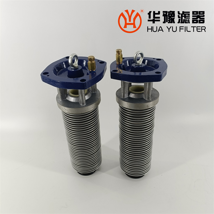 每一濾芯組件由濾器蓋、濾芯套筒、濾片及濾片圈等組成,濾器蓋頂部裝有放氣閥,供排出濾器內(nèi)腔的空氣用。 濾片套在濾芯套筒上,是濾器的主要過濾元件,由濾網(wǎng),支承網(wǎng)及波紋隔盤等組成,濾網(wǎng)的網(wǎng)目數(shù)由用戶根據(jù)需要選用。轉(zhuǎn)換閥體是由鑄鋁鋁合金制成的椎體,與閥孔研磨配合,閥體上鑄有上下兩油道孔,上油道孔一端通濾芯上方油腔,一段通濾器出口,下油道孔一段通濾芯腔,一段通濾器進(jìn)口,當(dāng)轉(zhuǎn)換閥迅速從一極限位置轉(zhuǎn)至另一極限位置時(shí),閥體將一濾芯腔的通路關(guān)閉,而將另一濾芯腔的通路打開,此時(shí),壓力油從濾器進(jìn)口流入濾芯腔,經(jīng)濾網(wǎng)過濾后的清潔油經(jīng)上方油腔從出口流出,達(dá)到濾清油液的目的。轉(zhuǎn)換閥體軸端頭上的箭頭指向接通的濾芯腔的一邊。