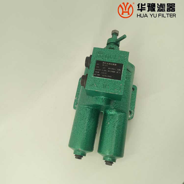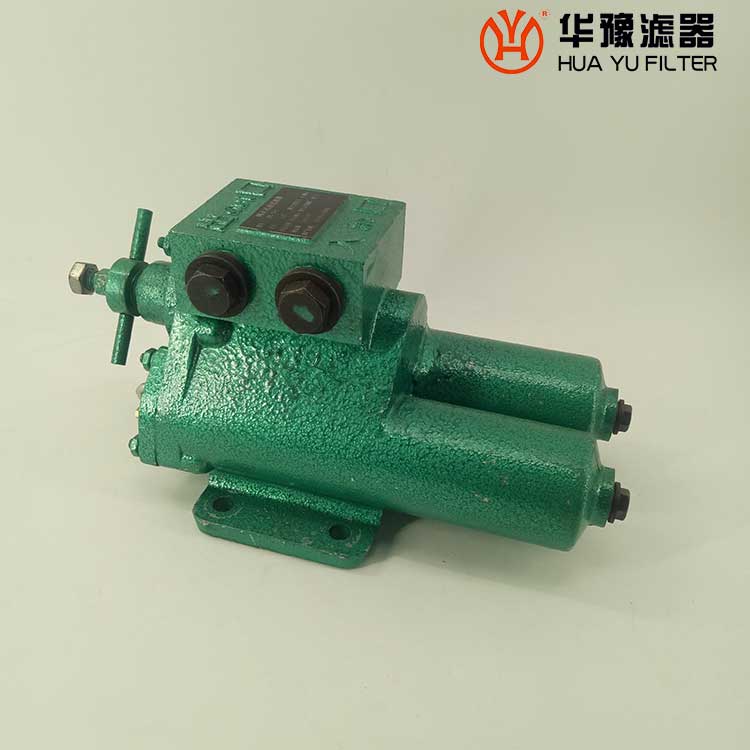 每一濾芯組件由濾器蓋、濾芯套筒、濾片及濾片圈等組成,濾器蓋頂部裝有放氣閥,供排出濾器內腔的空氣用。 濾片套在濾芯套筒上,是濾器的主要過濾元件,由濾網,支承網及波紋隔盤等組成,濾網的網目數由用戶根據需要選用。轉換閥體是由鑄鋁鋁合金制成的椎體,與閥孔研磨配合,閥體上鑄有上下兩油道孔,上油道孔一端通濾芯上方油腔,一段通濾器出口,下油道孔一段通濾芯腔,一段通濾器進口,當轉換閥迅速從一極限位置轉至另一極限位置時,閥體將一濾芯腔的通路關閉,而將另一濾芯腔的通路打開,此時,壓力油從濾器進口流入濾芯腔,經濾網過濾后的清潔油經上方油腔從出口流出,達到濾清油液的目的。轉換閥體軸端頭上的箭頭指向接通的濾芯腔的一邊。