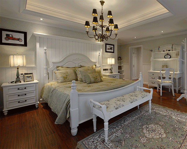 在家具配置上,新古典風(fēng)格家具多選用板木結(jié)合的實(shí)木家具,保留歐式古典家具的曲線和曲面,但少了古典的雕花,又多用現(xiàn)代家具的直線條。家具漆一般要求使用水性環(huán)保的產(chǎn)品,如綠色環(huán)保的大寶水漆,來展現(xiàn)木皮原始紋理,同時(shí)讓家具表面觸感光滑、平整,提升家具質(zhì)感。
